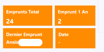 - Afficher un récapitulatif du nombre total d'emprunts et du nombre d'emprunts sur un an,